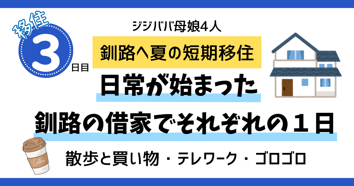 【移住3日目】:日常の始まり。釧路の借家でジジババ母娘それぞれの夏の1日