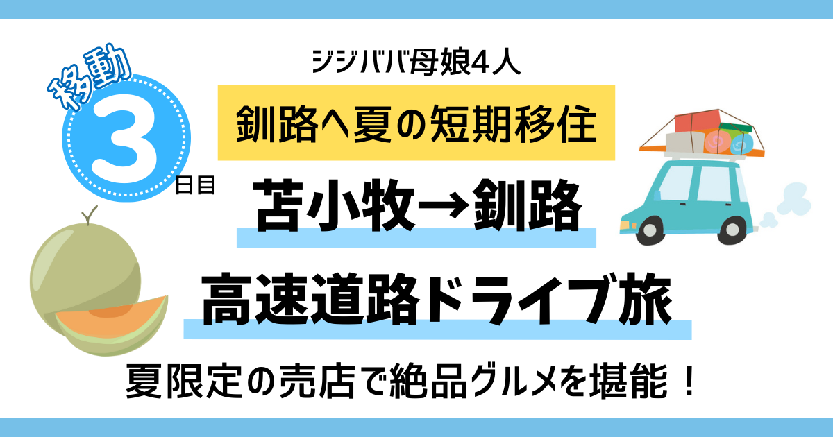 3日間かけて神奈川から釧路まで移動し、ついに最終日です。 とても快適に過ごした苫小牧の グランドホテルニュー王子 を出発し、釧路に借りた一軒家へ向かいます。距...