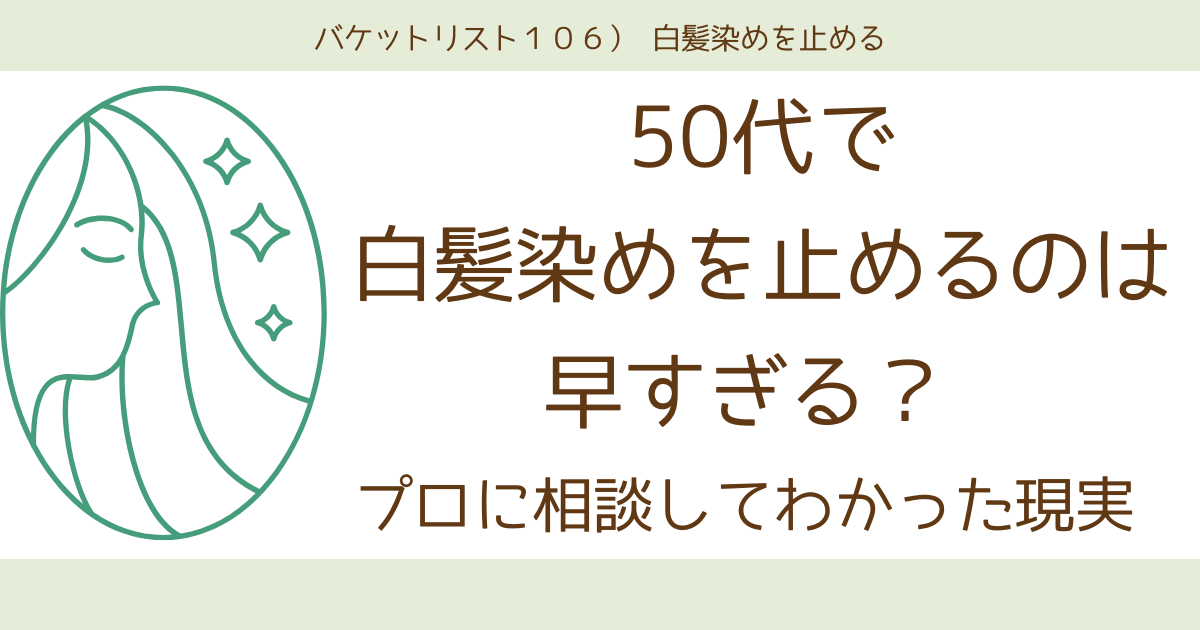 バケットリスト106) 白髪染めを止める は、いつか白髪染めを止めたいな、と思って書いたものです。でも、白髪を染める度に、でも、ふと考えるのです。 このまま白髪を染め続ける人生でいいのかな 20代のころは、白髪なんて遠い話だと思っていました。... やりたいことバケットリストバケットリストで性格がわかる?AI診断で見えた自分らしさと生き方